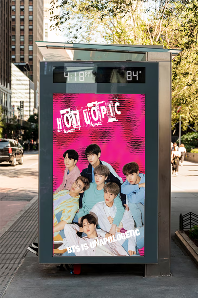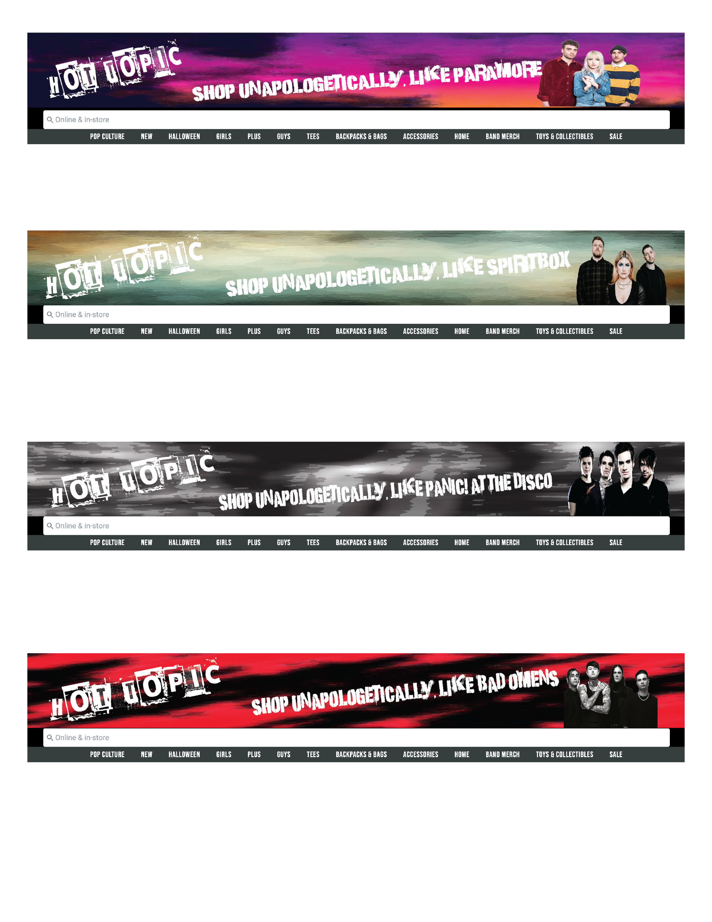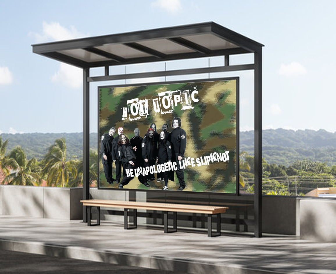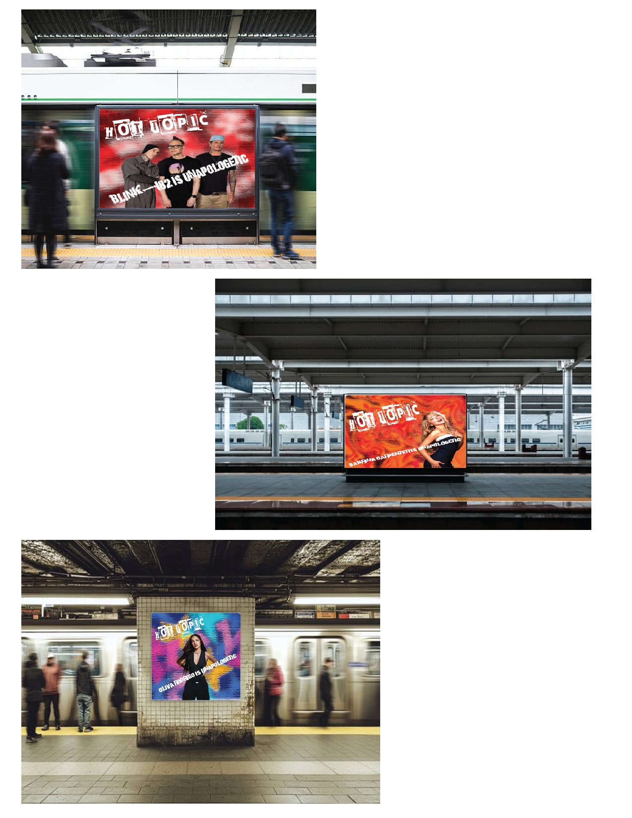 For this project, I created an advertising campaign for clothing company, Hot Topic. Hot Topic is a clothing company that specializes in alternative, punk-inspired clothing. It is typically located in a lot of malls, which means the target demographic for this campaign is teenagers and young adults. Once I did the designs, I contextualized them onto various media channels.